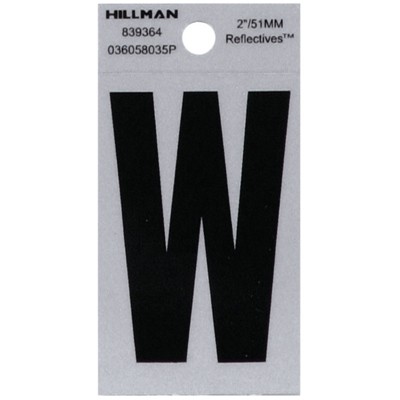 Hillman 2 in. Reflective Black Vinyl Self-Adhesive Letter W 1 pc (Case of 6)