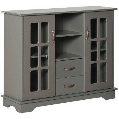 HOMCOM Modern Storage Console Cabinet with 2 Framed Glass Doors and 2 Drawers for Kitchen or Living Room