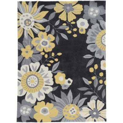 HomeStock Trio Wildflower Grey & Yellow 1.10x2.10, Transitional, Hand Tufted