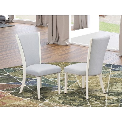 HomeStock Belmont 3 Piece Kitchen Table Set of 1 Pedestal Dining Table , 2 Light Beige Linen Fabric Parson Dining Chairs , High Back
