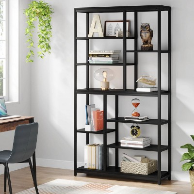 Hommoo 71" 8-Tier Staggered Narrow Bookshelf, Industrial Etagere Display Shelf