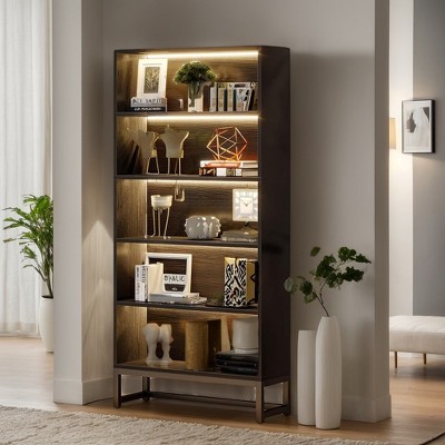 Hommoo 70.8” Bookcase, Large Bookshelf Organizer with 5-Tier Storage Shelves with LED Lights powered by USB