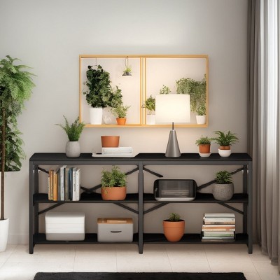 Hommoo 4-Tier Console Table, 39.4" Entryway Table with Geometric Metal Frame