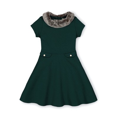 Hope & Henry Girls' Fit and Flare Ponte Dress with Faux Fur, Toddler