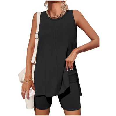 Imily Bela Sleeveless High Low Hem Tank Biker Shorts Set Womens Summer Lounge Wear