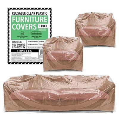 Impresa 3 Pack Reusable Furniture Covers, Includes 1 Lightweight Clear Plastic Couch Cover and 2 Armchair Covers, 2 Mil Thick