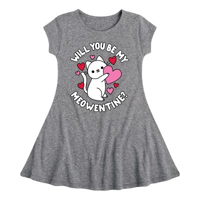 Girls' - Instant Message - Valentine's Day Be My Meowentine Fit & Flair Cap Sleeve Graphic Dress