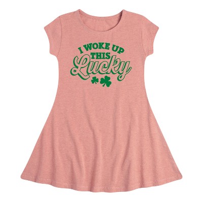 Girls' - Instant Message - St. Patrick's Day I Woke Up This Lucky Fit & Flair Cap Sleeve Graphic Dress