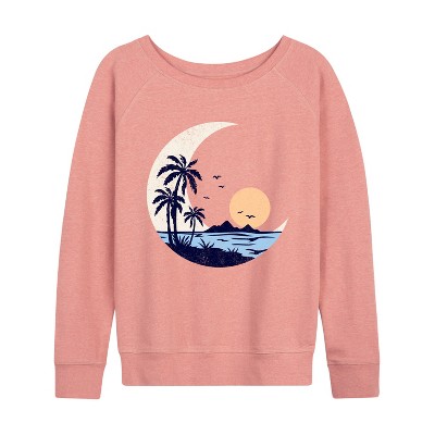 Women's - Instant Message - Moon Beach Scene Lightweight French Terry Wide Neck Long Sleeve Graphic Shirt