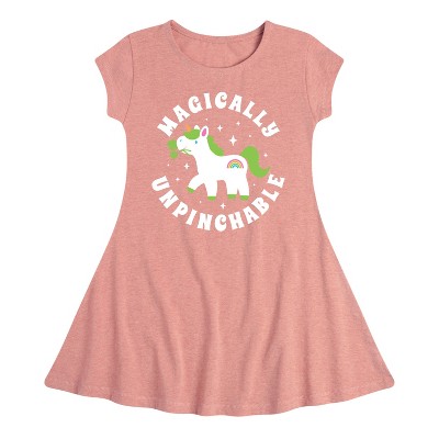 Girls' - Instant Message - St. Patrick's Day Magically Unpinchable Unicorn Fit & Flair Cap Sleeve Graphic Dress