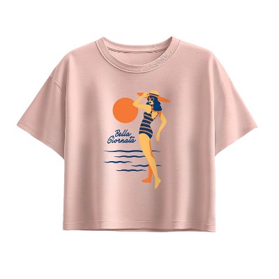 Girls' - Instant Message - Palm Beach Deco Short Sleeve Boxy Graphic T-Shirt