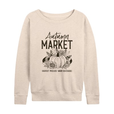 Women's - Instant Message - Autumn Market Harvest Produce Lightweight French Terry Wide Neck Long Sleeve Graphic Shirt