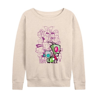Women's - Invader Zim - Invader Zim Collage Lightweight French Terry Wide Neck Long Sleeve Graphic Shirt