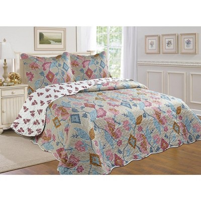 J&V TEXTILES Floral Traditional Printed Reversible Premium Quilt Sets (2-or3-Piece)