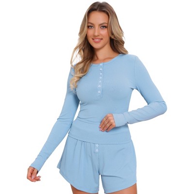 Jess by Meiko Women's Casual Cozy Henley Top and Short Set