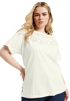 June + Vie by Roaman's Openwork Boatneck Shirt