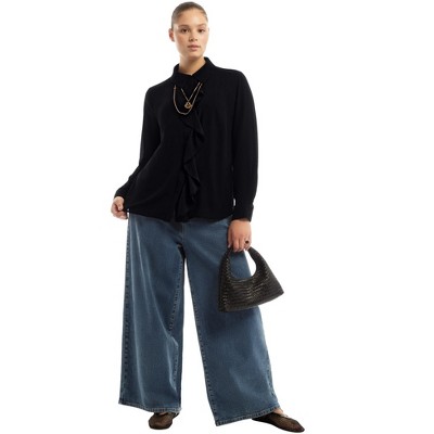 June + Vie by Roaman's Curvie Fit High-Waisted Wide-Leg Utility Jean