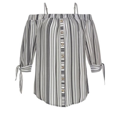 Women's Striped Cold Shoulder Blouse Shirt - LASCANA