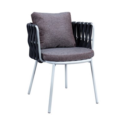 LeisureMod Spencer Outdoor Patio Dining Chair with Cushions - Modern Rope Weave Design and Metal Frame Armchair for Garden Poolside