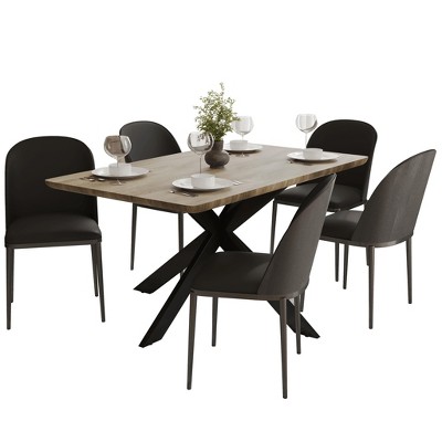 LeisureMod Ravenna 6-Piece Dining Set - 63" Rectangular MDF Wood Dining Table, 5 Leather Dining Chairs