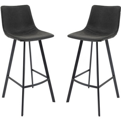 LeisureMod Elland Bar Stool in Leather Upholstery - Modern Counter Height Stool with Iron Legs and Footrest for Kitchen, Bar, and Pub, Set of 2