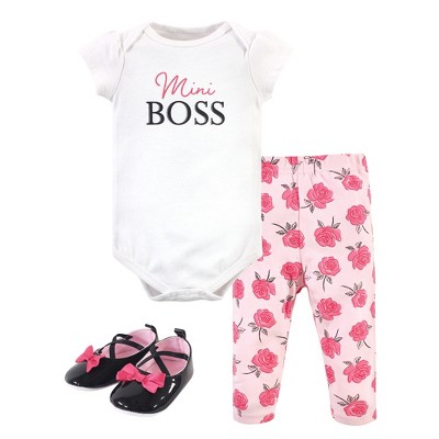 Little Treasure Baby Girl Cotton Bodysuit, Pant and Shoe 3pc Set, Mini Boss