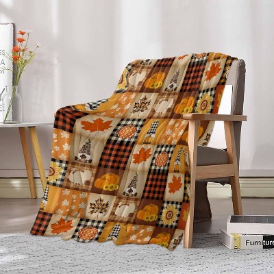 Lomsoe Autumn Pumpkin and Fallen Leaf Theme Print flannel blanket, warm and soft blanket suitable for sofa beds and chairs.