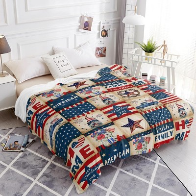 Lomsoe Blue and Red Grid Theme Print flannel blanket, warm and soft blanket suitable for sofa beds and chairs.Valentine's Day Gift.