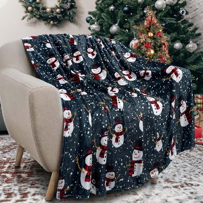 Lomsoe Snowman and Snowflake Theme flannel blanket, warm and soft blanket suitable for sofa beds and chairs.Valentine's Day Gift.