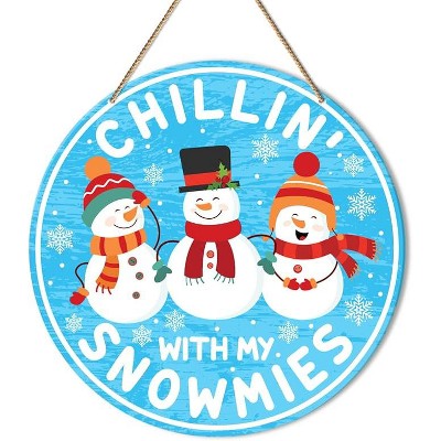 Lomsoe Christmas Snowman Wooden Hanging Decor Winter Let It Snow Door Sign Wooden Farmhouse Wall Front Door Hanger Christmas Gift