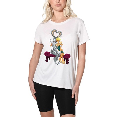 Women's Looney Tunes Bugs And Lola Hearts Valentine's Day Loose T-Shirt