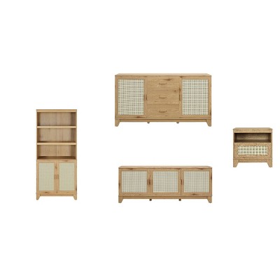 Sheridan 59.05" Modern 4 Shelf Cane Sideboard - Manhattan Comfort
