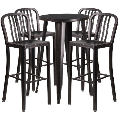 Merrick Lane Outdoor Dining Set with 24" Round Table and Slatted Back Bar Stools with Footrests