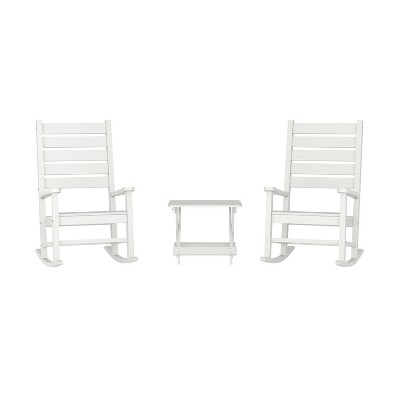 Merrick Lane 3-Piece Chairs/Table Set for All-Weather Indoor/Outdoor Use with 2 Contemporary Rockers and Stylish End Table