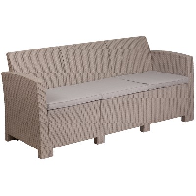 Merrick Lane Outdoor Furniture Resin Sofa Faux Rattan Wicker Pattern Patio 3-Seat Sofa With All-Weather Cushions