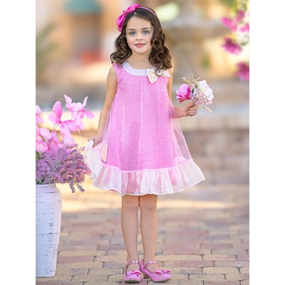 Glittery Pink Bow Sequin Ruffle Dress Mia Belle Girls, Pink, 2T