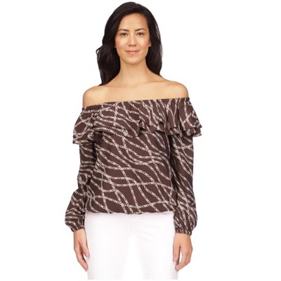 Michael Kors Womens Printed Off the Shoulder Blouse