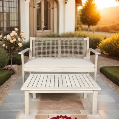 Moda Furnishings 2 - Piece Acacia Wood Patio Outdoor Conversation Set With Beige Cushions