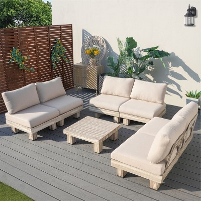 Moda Furnishings 6-Person Outdoor Patio Aluminum Wood Grain Sectional Seating Group With Beige Cushions