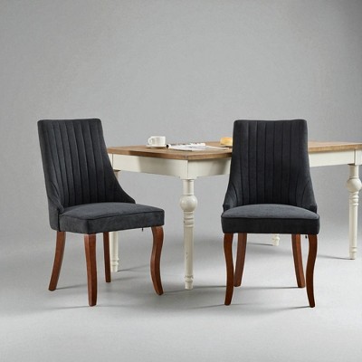 Set of 2 Upholstered Dining Chairs with High Backrest, Rayon Cloth Flocking Linen, Foam Cushion, and Curved Solid Wood Legs for Dining Room