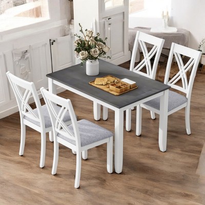 5-Piece Dining Table Set with 4 X-Back Chairs, Space-Saving Design for Small Dining Rooms, Solid Wood Construction with Linen Upholstered Seats