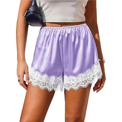 Ekouaer Women's Silk Satin Shorts Lace Trim Micro Mini Satin Shorts Y2K Casual Pajama Short Summer Lounge Shorts