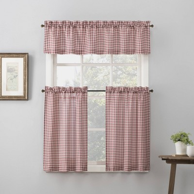Parkham Farmhouse Plaid Rod Pocket Semi-Sheer Kitchen Curtain Valance and Tiers Set - No. 918