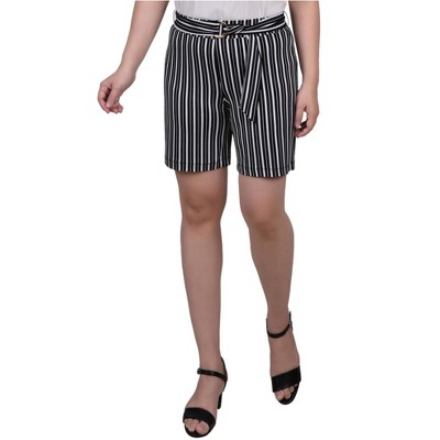 NY Collection Womens Belted Striped Casual Walking Shorts