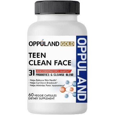 Oppuland Teen Clean Face, Helps Balance Skin Health & Cut Down Breakouts, Minimizes Pores' Appearance, Dietary Supplement - 60 Capsules