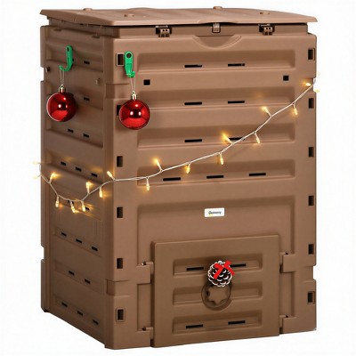 Outsunny 120 Gallon Compost Bin, Large Composter with 80 Vents and 2 Sliding Doors, Lightweight & Sturdy