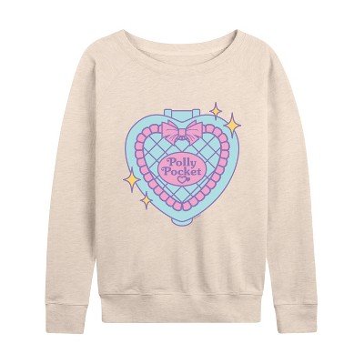 Women's - Polly Pocket - Polly Pocket Heart Lightweight French Terry Wide Neck Long Sleeve Graphic Shirt