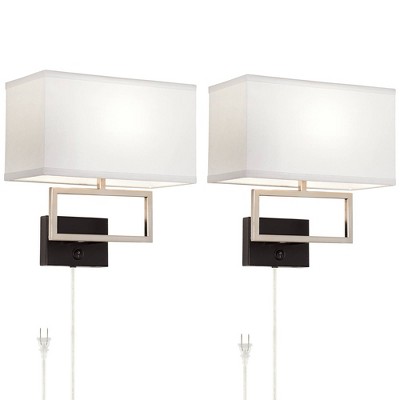Possini Euro Design Trixie Modern Wall Lamps Set of 2 Smart Sockets Brushed Nickel Plug-In 12" Fixture Rectangular Shades for Bedroom