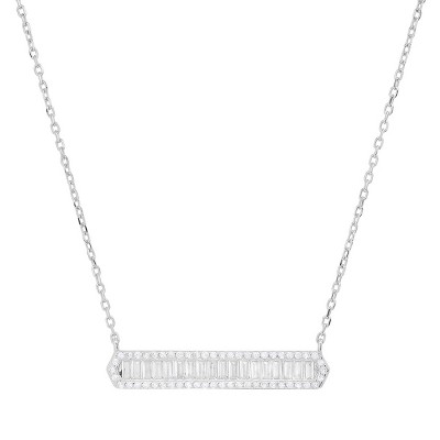 Sterling Silver Baguette-cut CZ Bar Necklace