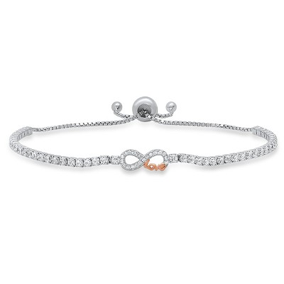 Sterling Silver Petite Two-Tone "Love" Infinity CZ Adjustable Bracelet